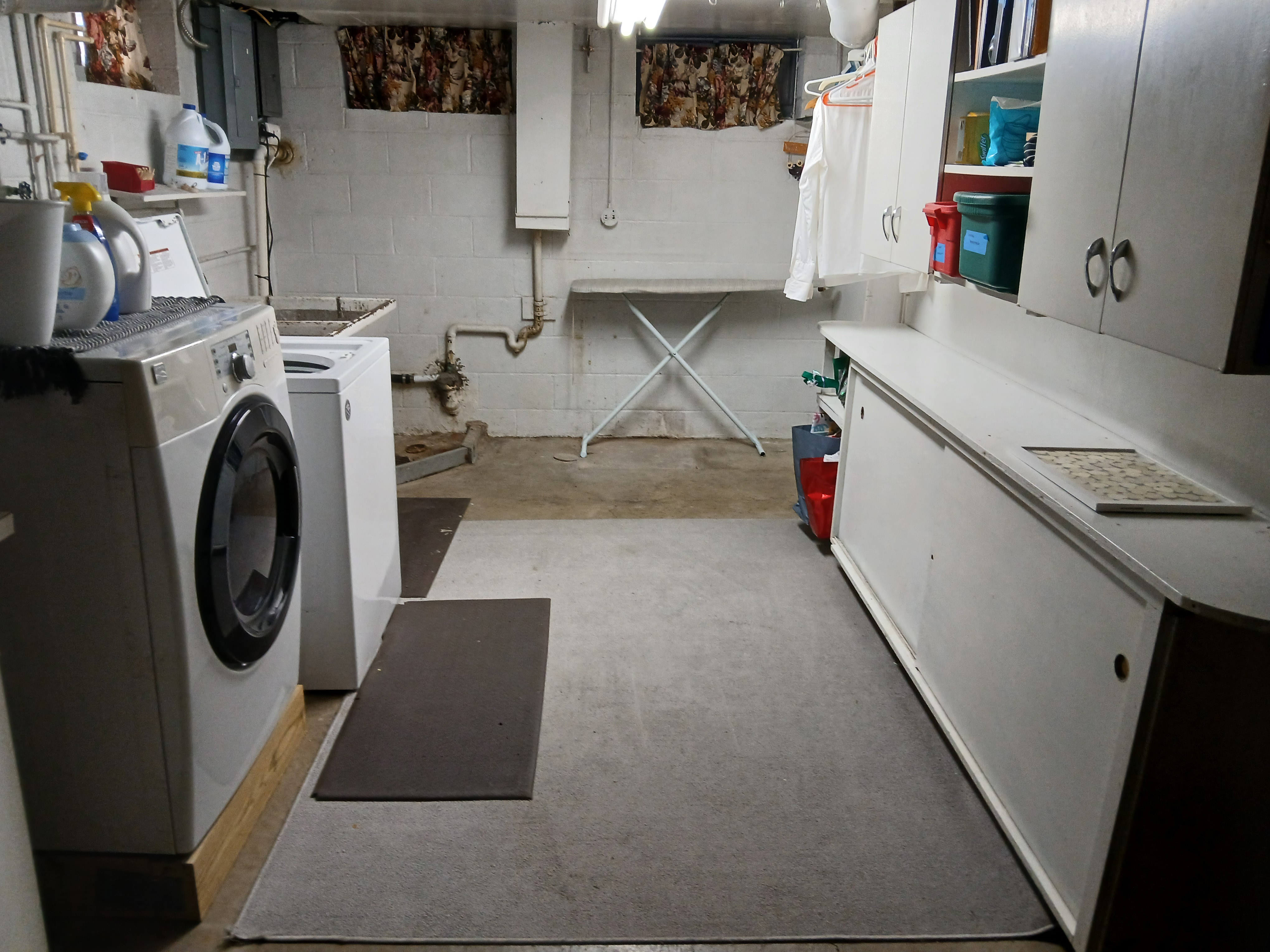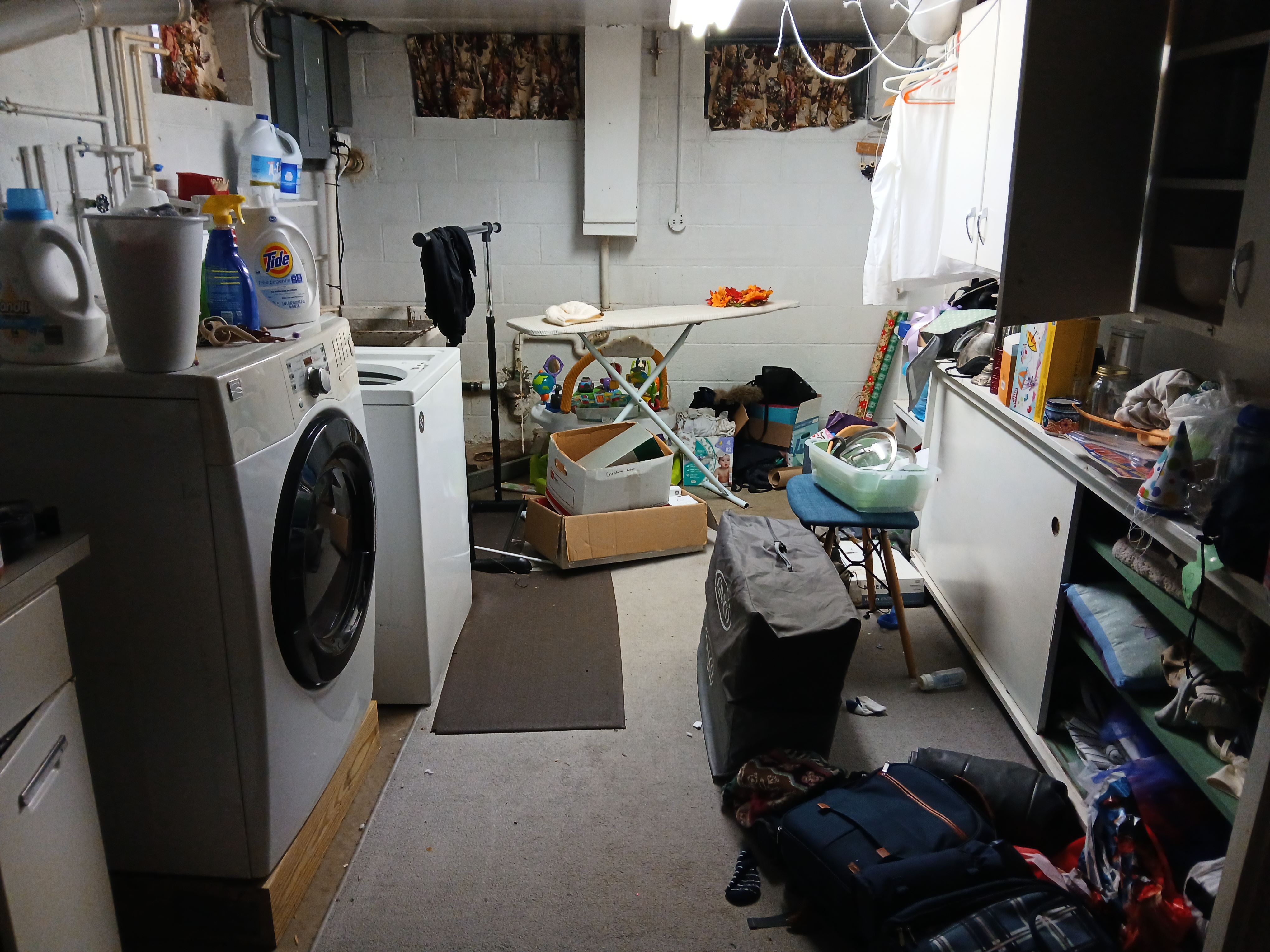 We began with an easy, high-impact spot to build momentum: the top of her dryer. It had become a catch-all surface, so we designated it as her dedicated laundry supply area and refreshed it using a piece of fabric we found during the session. This quick improvement set a clear direction for the rest of the project and helped establish how the space could function moving forward.
